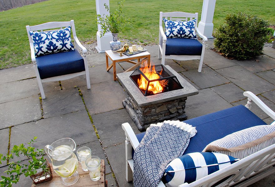 I love the way the navy color flows from the porch out onto the patio and gives the two spaces a cohesive feel. These pillows were the perfect addition to the chairs they already owned.